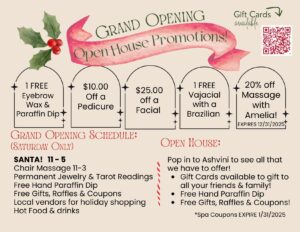 Grand Opening of Ashvini Day Spa and Holiday Open House at Lakota’s Farm.